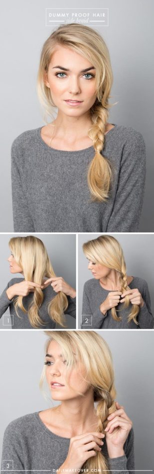 3. แสกข้างแล้วเปียผมมาข้างที่ผมเยอะกว่า ดึงให้ดูลุ่ยนิดๆ สวยหวาน