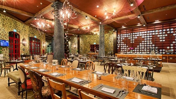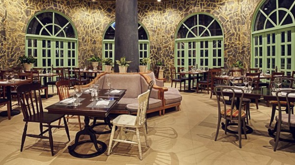 ห้องอาหารทั้ง 7 แห่งของโรงแรมเมอร์เคียวบาน่าฮิลส์ เฟรนซ์ วิลเลจ มีบริการอาหารและเครื่องดื่มหลากหลายรูปแบบ เช่นห้องอาหาร La Crique ให้บริการอาหารนานาชาติทั้งแบบบุฟเฟ่ต์และอาหารจานเดียว