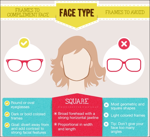 ทรงแว่นที่ควรเลี่ยง : ทรงสี่เหลี่ยมและกรอบสีสว่างนั่นเองค่ะ เพราะจะยิ่งเน้นสัดส่วนของหน้ามากขึ้นไปอีก