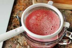 2.นำส่วนผสมที่ปั่นเสร็จ มากรองด้วยตะแกงตาถี่อีกครั้งนึงเพื่อเอากากของแตงโมออกจะทำให้ไอติมของเราเนื้อเนียน