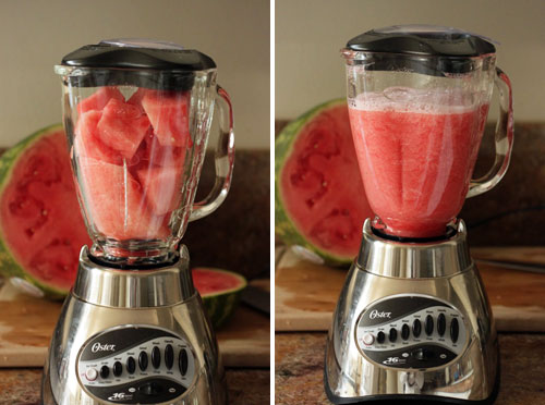 1. นำแตงโมที่หั่นเตรียมไว้เป็นชิ้นๆแยกเมล็ด น้ำมะนาว น้ำตาล เตกีล่า