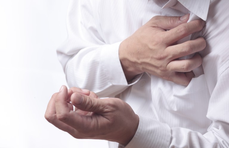 เจ็บปวดที่ทรวงอกข้างซ้ายหรือที่หัวใจ อึดอัด หายใจไม่สะดวก จะดีขึ้น