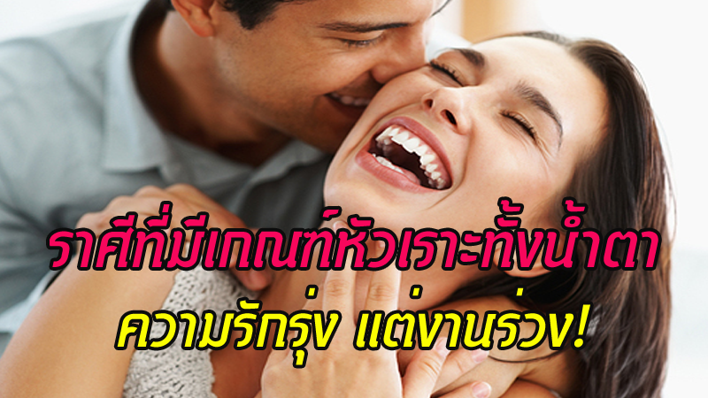 สำหรับราศีที่มีเกณฑ์หัวเราะทั้งน้ำตา ความรักรุ่ง แต่งานร่วง ได้แก่ ชาวราศีมีน ซึ่งคนราศีนี้ดวงจะแปรปรวนหากความรักรุ่ง การงานจะร่วง แต่ถ้างานรุ่ง ความรักก็จะร่วง อยู่ที่ว่าช่วงนี้คุณโฟกัสอะไรและให้ความสำคัญกับเรื่องใดมากกว่ากัน
