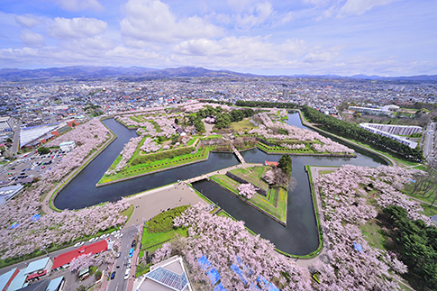 เมื่อดอกซากุระบาน จะเปลี่ยนป้อมปราการรูปดาวแห่งเมืองฮาโกดาเตะ ให้กลายเป็นสีชมพู