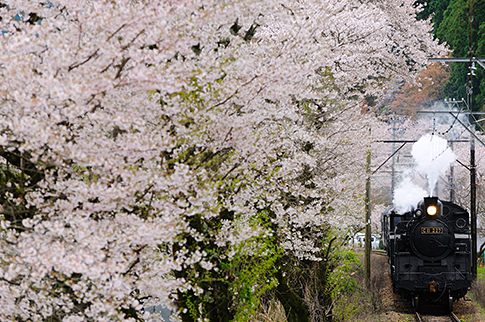 ที่มีโอกาสได้นั่งบนรถไฟสุดคลาสสิคท่ามกลางต้นซากุระที่โอมล้อมรอบทิศทาง
